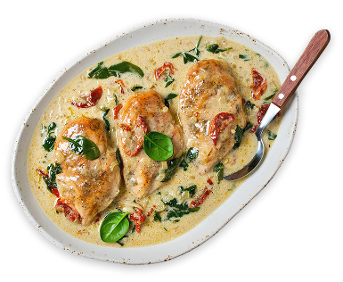 Si buscas una receta diferente, fácil de hacer y llena de sabor, este pollo cremoso con espinacas y champiñones será tu nuevo plato favorito. La jugosidad de nuestras pechugas de Pollo Campero Norave se combinan con una salsa suave y cremosa, mientras las espinacas frescas y los champiñones aportan color y textura. Una opción perfecta y que tendrás lista en menos de 30 minutos.
